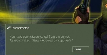 Вылезет окошко Kicked: ваш ник слишком короткий.